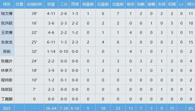 此役广东队多达五人得分上双,徐杰砍下全场最高的18分外加7板6助全面数据,胡明轩虽只得到8分但送出全场最高的8次助攻,赵睿13分4板5助,日后若想看到黑白矮并肩作战或许只能在国家队了。