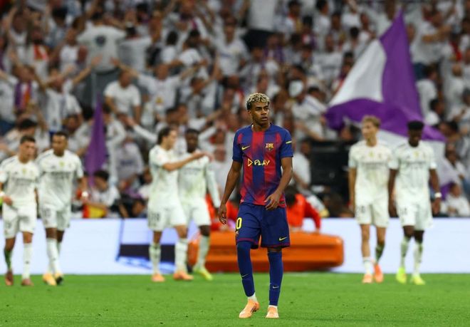 3分钟后,贝林厄姆外围远射,皮球被挡了一下偏出了球门。第29分钟,姆巴佩禁区右侧小角度射门,门将把球扑出。6分钟后,维尼修斯挑射被扑出。第38分钟,巴萨扳平比分。拉什福德横传,费尔明包抄推射破门。5分钟后,皇马再次领先。米利唐头球摆渡,贝林厄姆门前轻松推射空门得手。半场结束,皇马2-1领先巴萨。